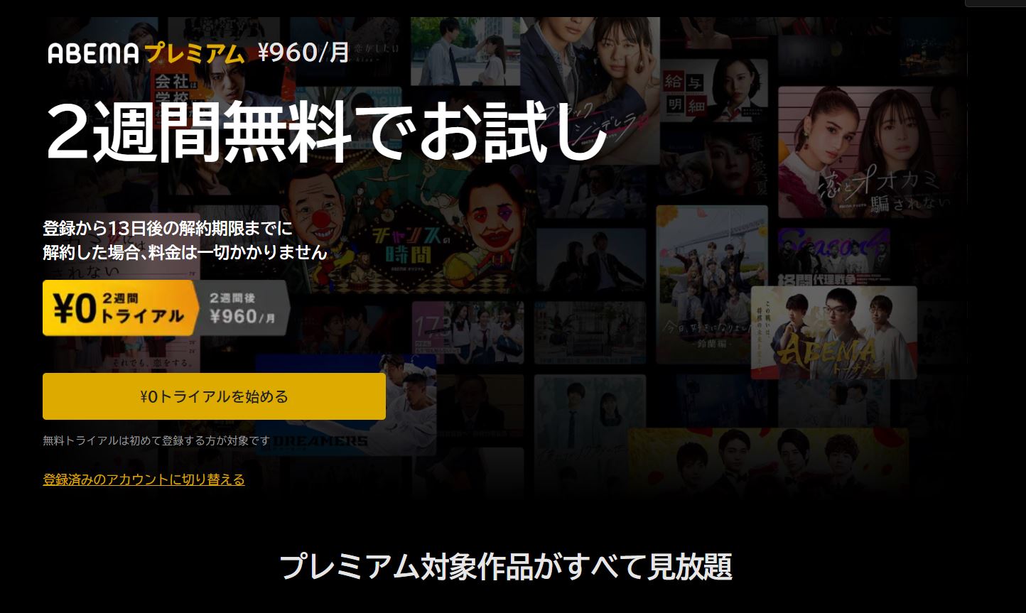 2. 動画見放題の月額960円(税込)【ABEMAプレミアム】